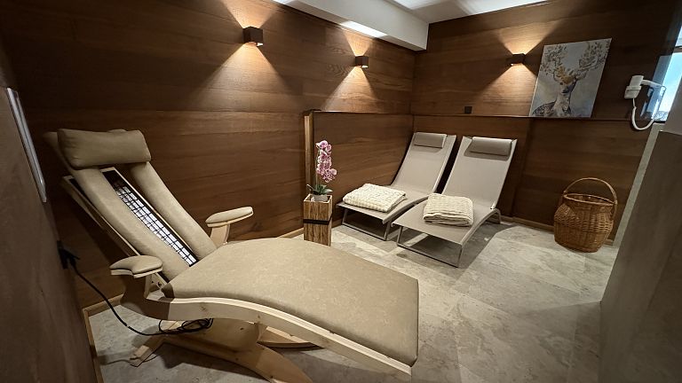 Genieße die wohltuende Wärme in unserer traditionellen Finnischen Sauna, die dir nicht nur tiefgehende Entspannung bietet, sondern auch die Durchblutung fördert und das Immunsystem stärkt. Für eine noch intensivere Erholung kannst du unsere Infrarotliege nutzen – ideal, um gezielt Verspannungen zu lösen und die Muskulatur zu entspannen.