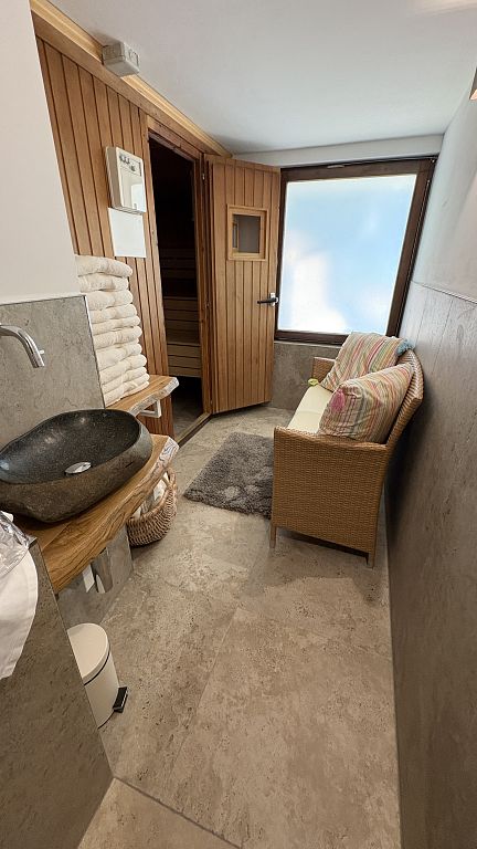 Unser Saunabereich ist der perfekte Ort, um dem Alltag zu entfliehen und Körper sowie Geist in Einklang zu bringen. Tauche ein in eine Oase der Entspannung und genieße jede Minute in einem Ambiente, das sowohl für Ruhe als auch für Regeneration sorgt. (BADEMÄNTEL können gerne vor Ort geliehen werden)